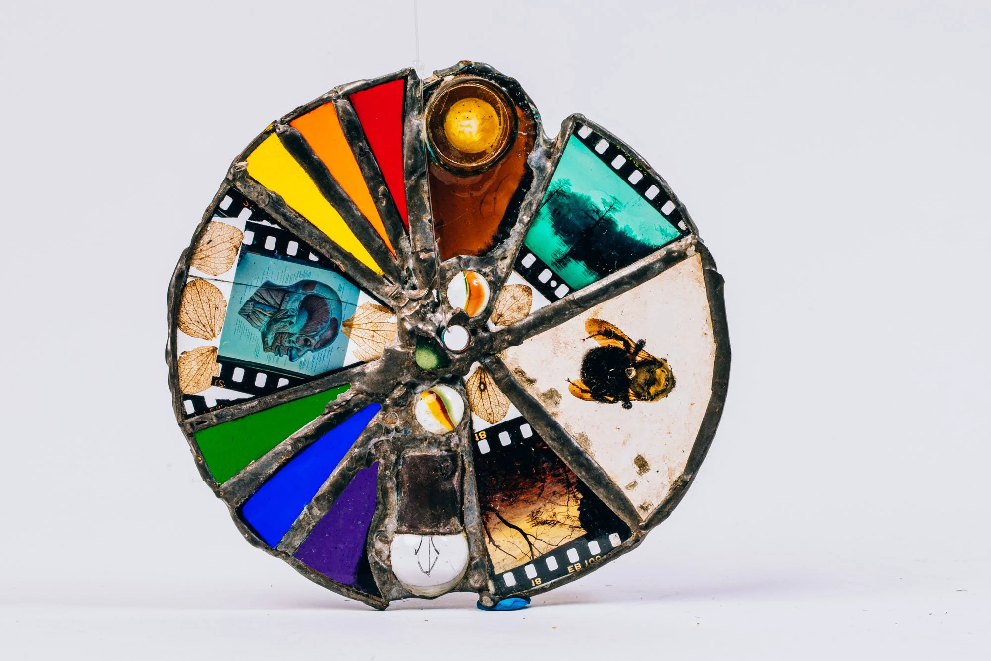 Mad, 4x4x6", mixed media and stained glass kaleidoscope